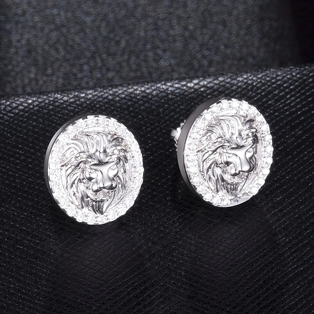 Par de Aros estilo "LEON" con cristales 5A de maxima calidad y baño refinado de oro blanco u oro 18K. UNISEX